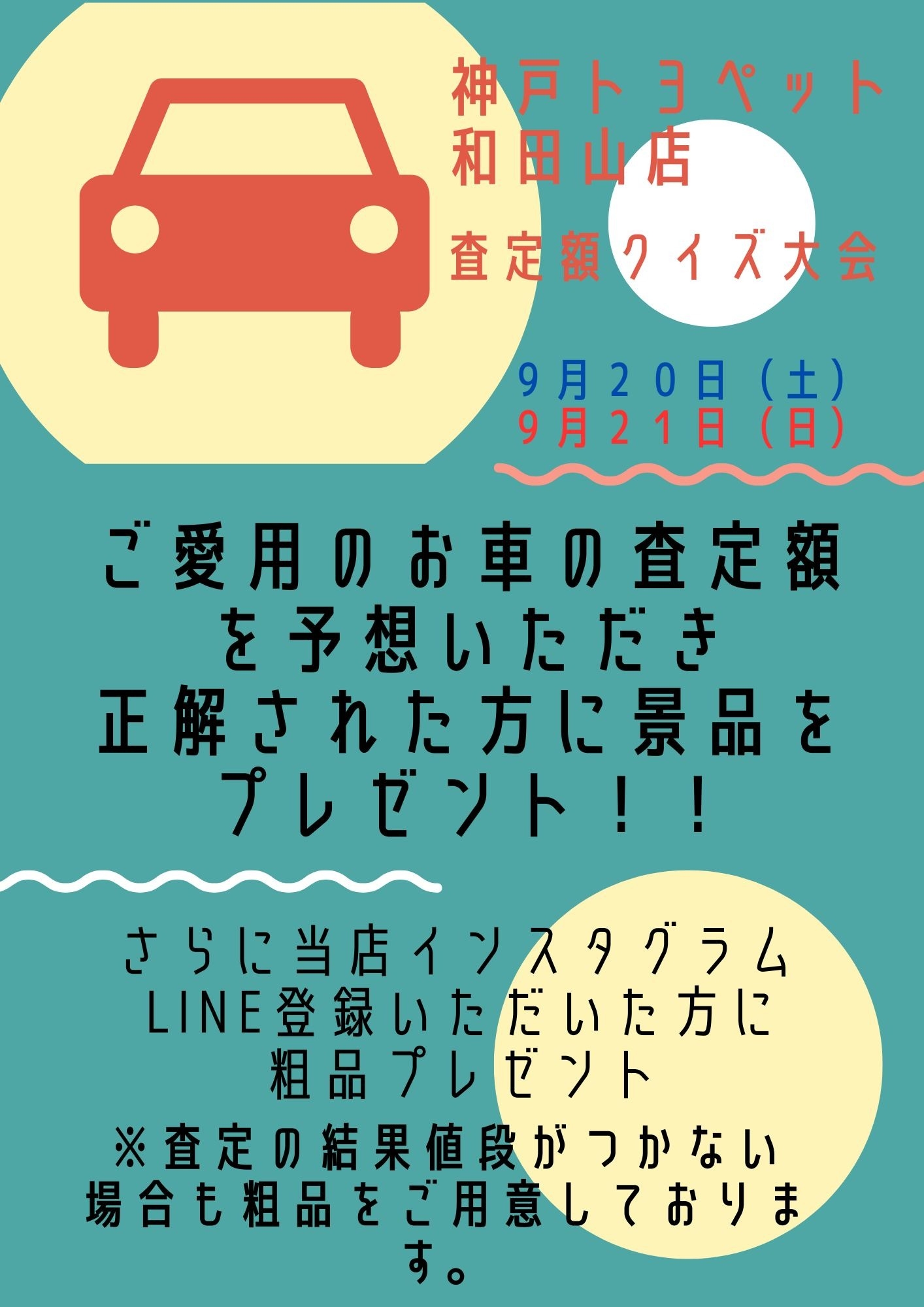 和田山店・査定額クイズ大会 2025.09.20 9月20日(土)、21日(日) 神戸トヨペット和田山店にて査定額クイズ大会を開催します!! ぜひチャレンジしてください!! ご来店お待ちしております! 前の記事へ 店舗ブログ一覧に戻る 次の記事へ