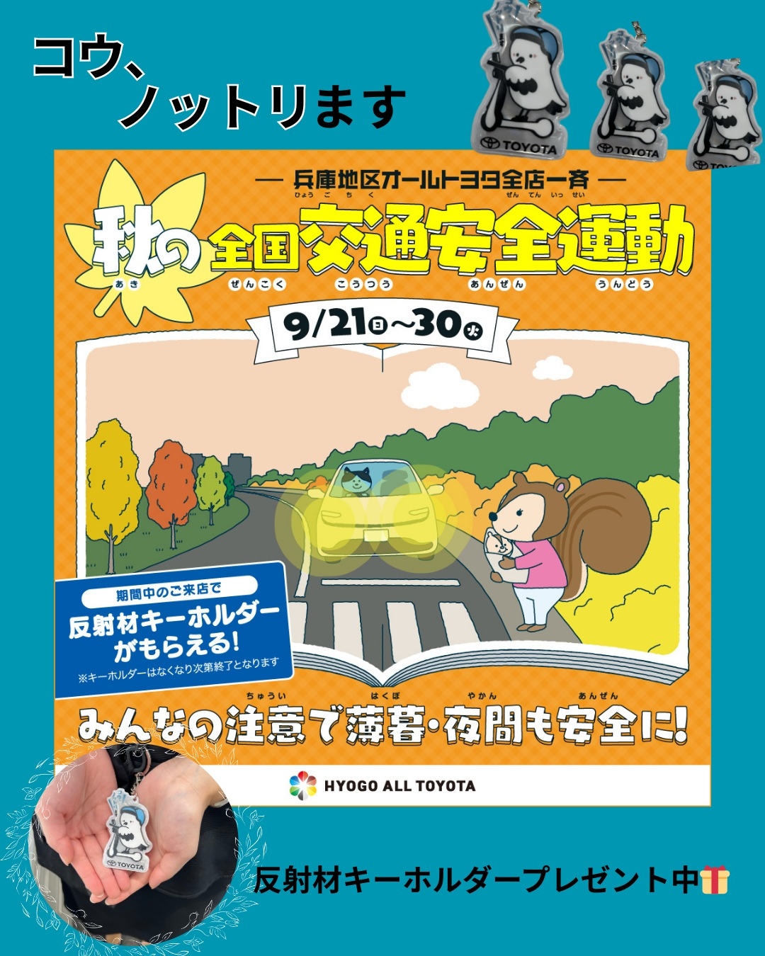 9/21(日)~30(火)までの期間、近畿地区オールトヨタ「秋の全国交通安全運動」となっております