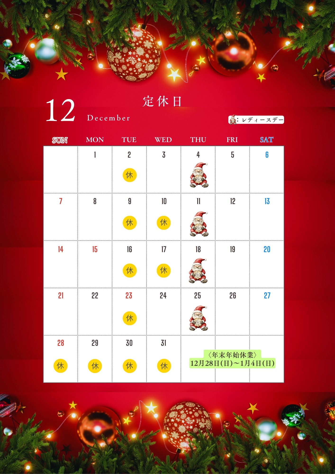 また、12月28日(木)~1月4日(日)は冬季休業となります。