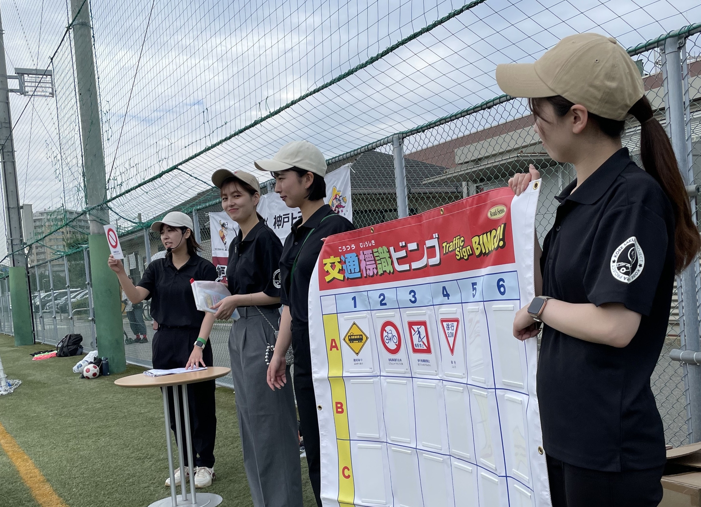 子供たちに楽しみながら交通安全を学んでもらうため、プロサッカーチームヴィッセル神戸とコラボした交通安全教室や、